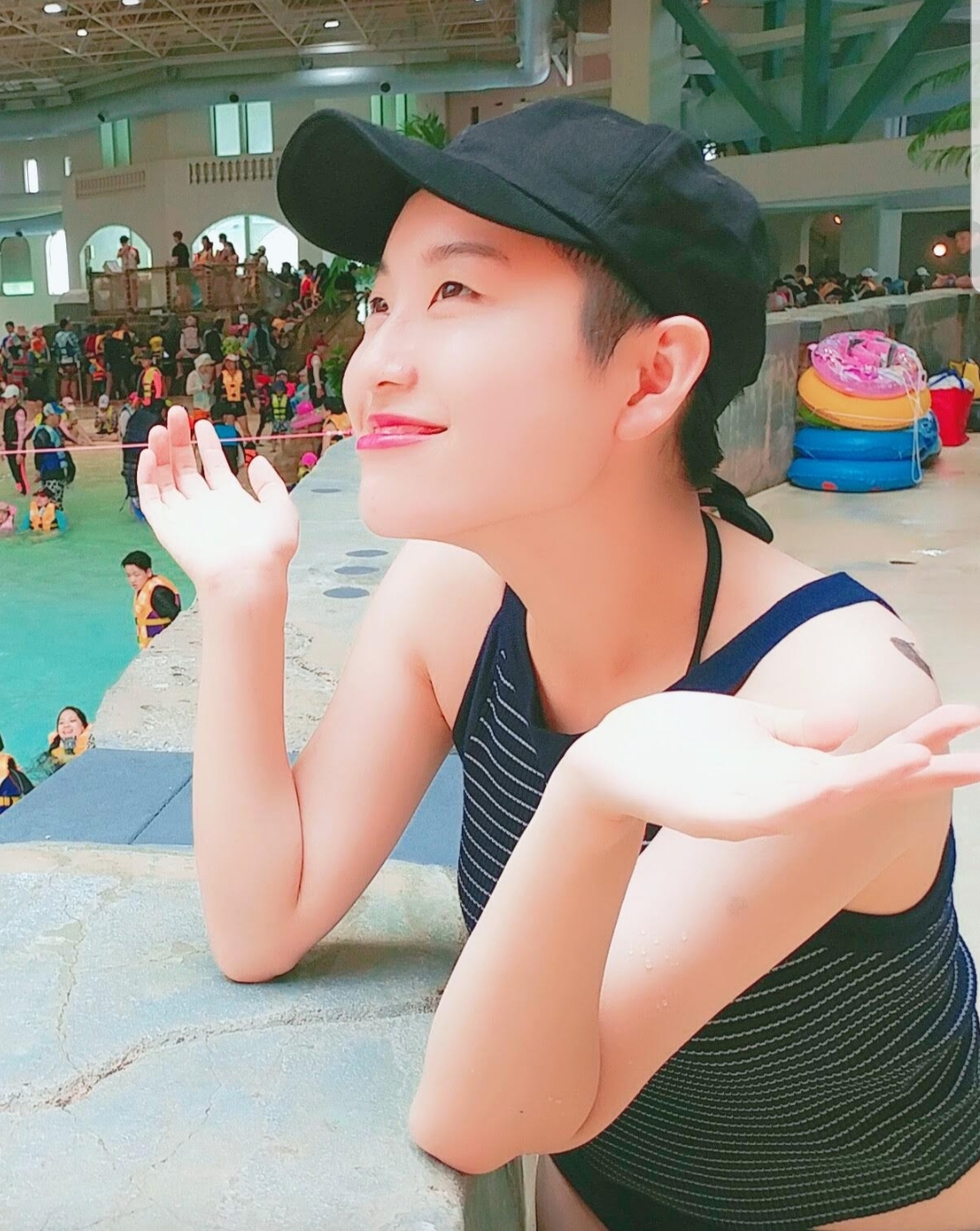 머리는 새집이지만 모자쓰고 잘만 놀러다님