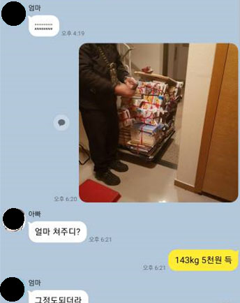 143kg, 4300원인데 동전이 없어 오천원 주셨다.